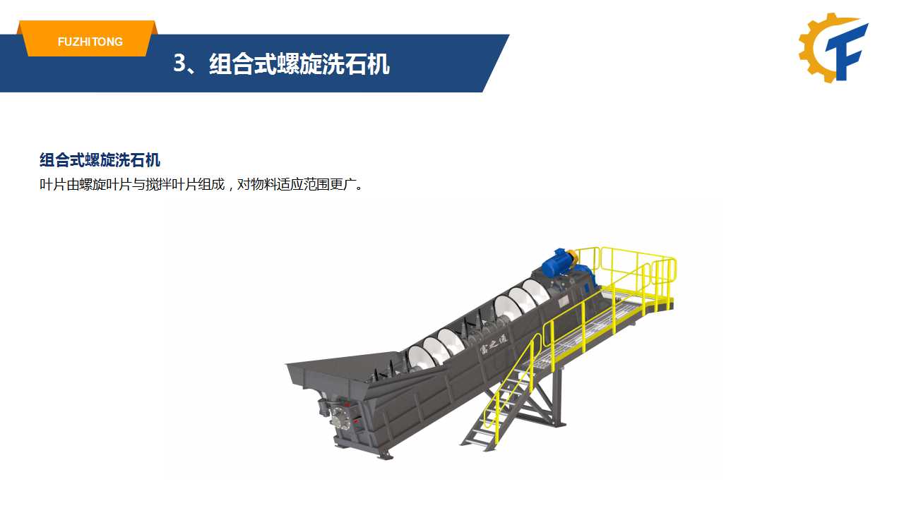 組合式螺旋洗礦洗石機葉片螺旋葉片與攪拌葉片組成,對物料適應范圍更廣;性能優(yōu)勢清洗更干凈:(1)葉片表面采用波浪型設計,摩擦清洗效果更好;